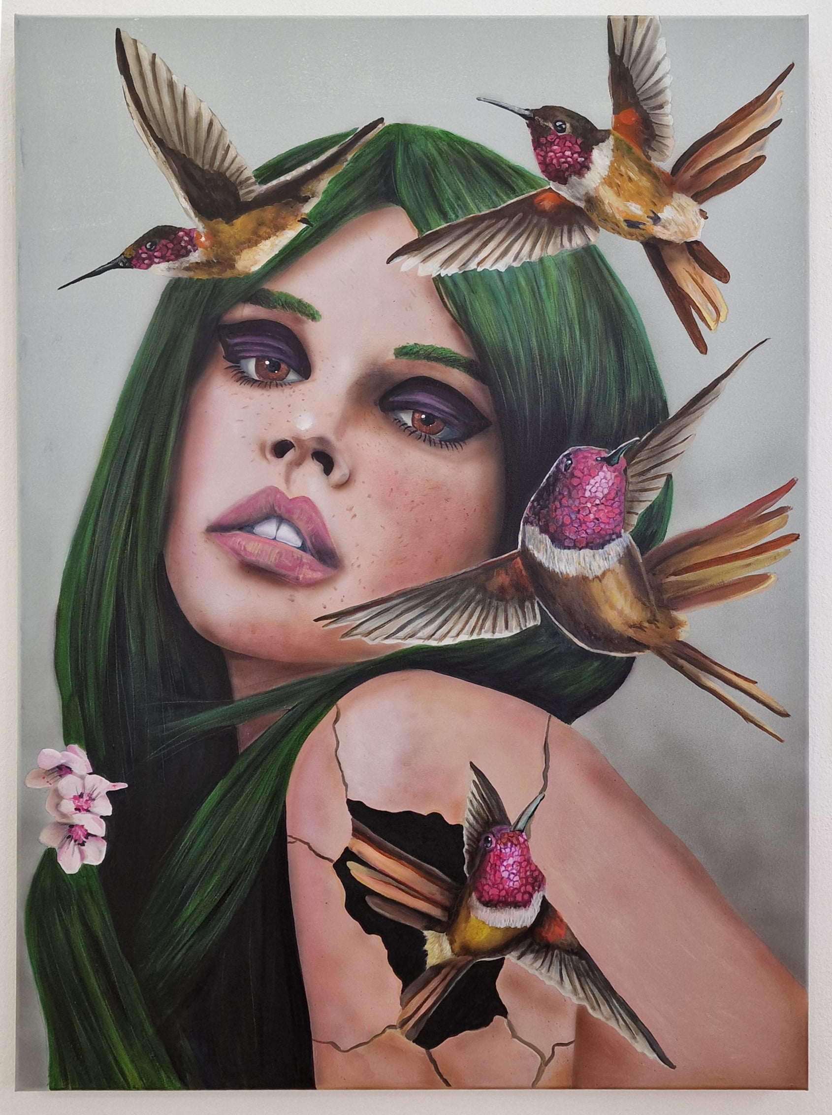 Lienzo pintado a mano, acrílico y spray